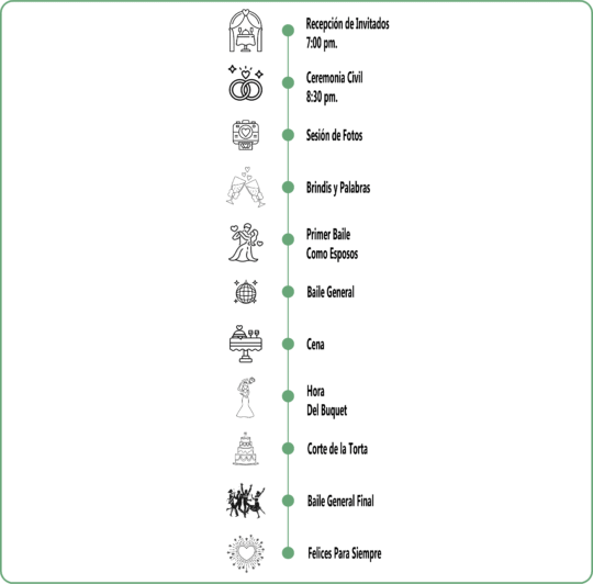 Por ello, les pedimos estar atentos al itinerario de la boda, donde encontrarán el detalle del paso a paso de esta celebración.